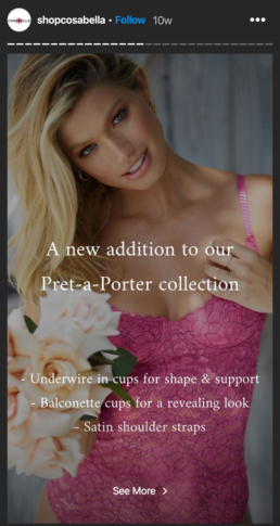 I handled Cosabella’s social media strategy to boost customer engagement by over 120% in just one year. Throughout my tenure, I produced various social media campaigns, such as shooting flat lay photography, launching collective brand giveaways, and researching ad strategies. I also am responsible for directing select IGTVs and executing effective IG stories as well as introducing branded GIF stickers.